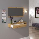 Está compuesto por un mueble horizontal con cajón de almacenaje y un espejo mural a juego, creando un conjunto equilibrado y muy útil para el día a día. El cajón es perfecto para guardar llaves, documentos u objetos personales, manteniendo la entrada siempre ordenada.